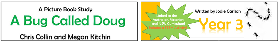 This pack includes a creative and fun, 10-week picture book study based on the wonderfully Australian book ‘A Bug Called Doug’ written by Chris Collin and Megan Kitchin. Also included a student work booklet. Lesson plans are linked to the Australian, NSW and Victorian curriculum with all outcomes included. It includes a fun and exciting child-centred STEM activity and all blackline masters needed for the lessons.