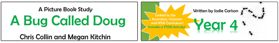This pack includes a creative and fun, 10-week picture book study based on the wonderfully Australian book ‘A Bug Called Doug’ written by Chris Collin and Megan Kitchin. Also included a student work booklet. Lesson plans are linked to the Australian, NSW and Victorian curriculum with all outcomes included. It includes a fun and exciting child-centred STEM activity and all blackline masters needed for the lessons.